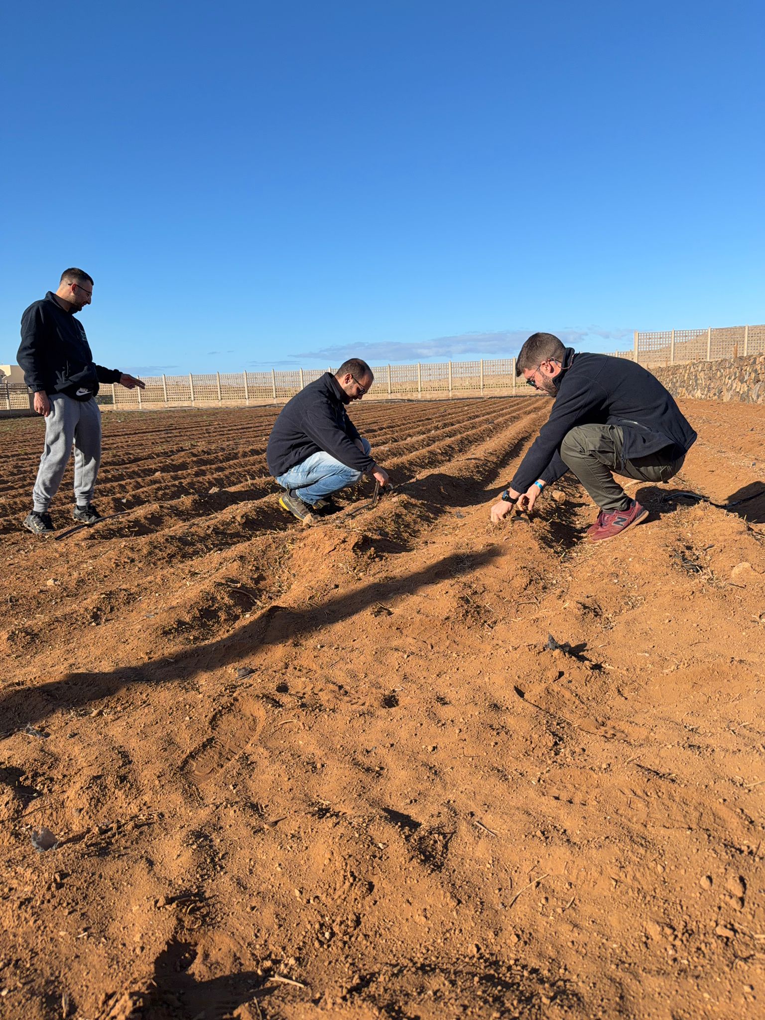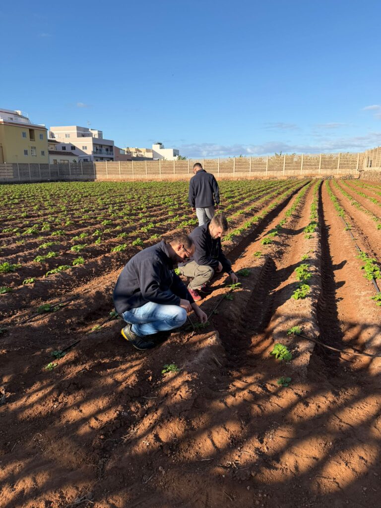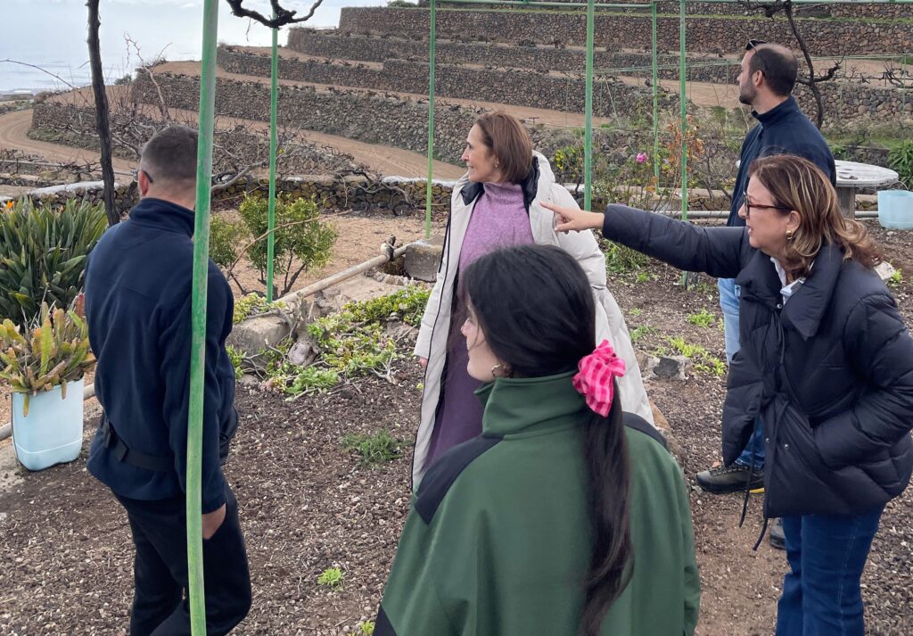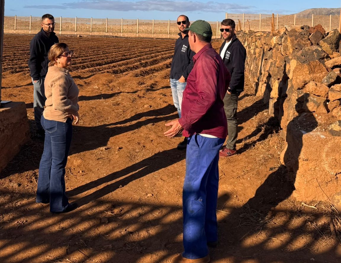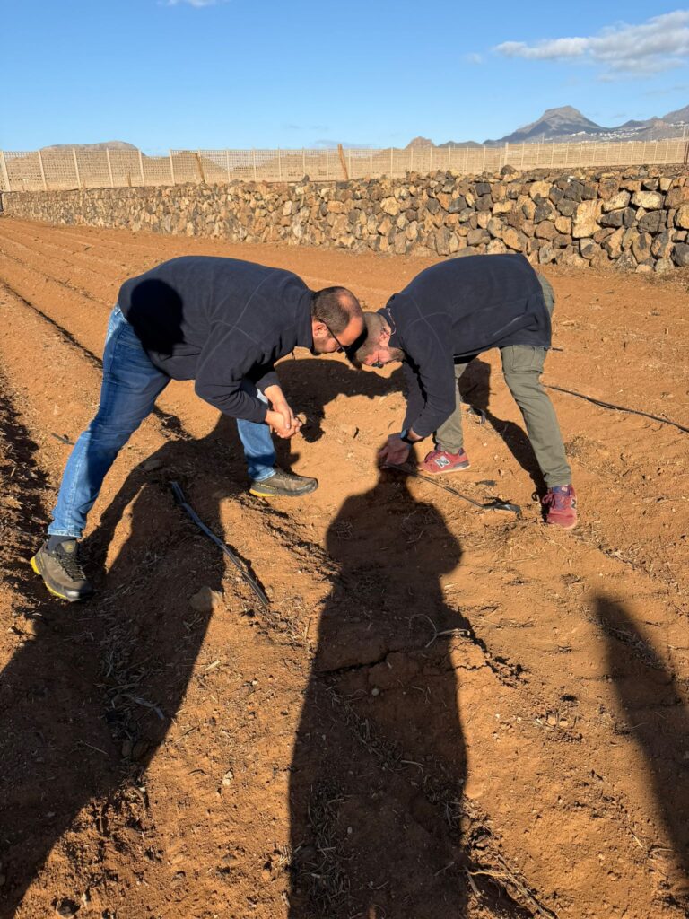 La finca, de más de 7,6 hectáreas, está organizada en bancales cubiertos con jable, una técnica tradicional clave en Canarias que permite conservar la humedad del suelo y reducir la evaporación, optimizando el rendimiento de cultivos como la patata y la viña.