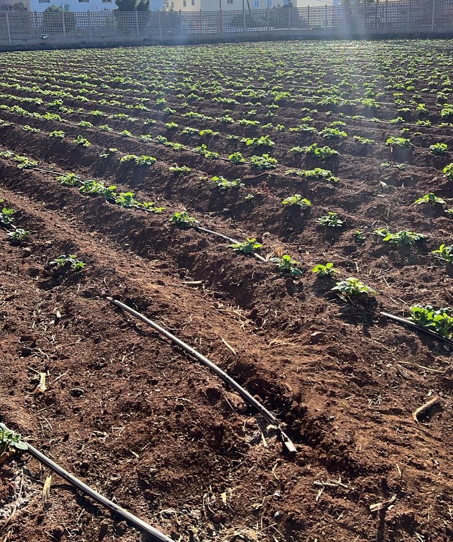 La explotación cuenta con un depósito propio y un sistema de impulsión que garantiza un riego uniforme en toda la parcela, combinando infraestructuras sencillas con una planificación precisa en un territorio donde el agua es un recurso estratégico.