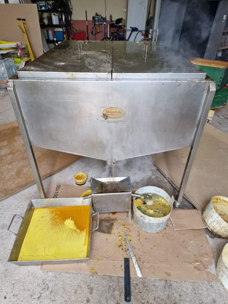 Infraestructura propia para transformar y cerrar el ciclo. Disponen de una sala de extracción y envasado de 75 m², un almacén de 110 m² para alzas y material (donde se repara y se prepara la campaña en invierno) y una tercera nave-taller de 160 m² para fundir cera de cuadros viejos y desinfectarlos.