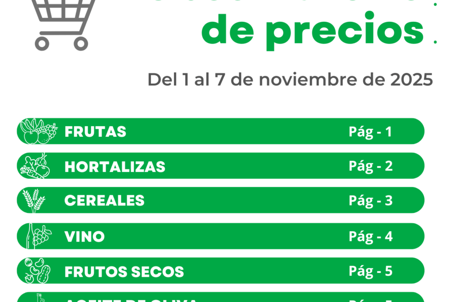 Ya disponible el Observatorio de precios de Asaja correspondiente a la semana 44, del 25 al 31 de octubre de 2025.