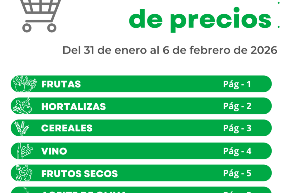 Ya disponible el Observatorio de precios de Asaja correspondiente a la semana 6, Del 31 de enero al 6 de febrero de 2026.