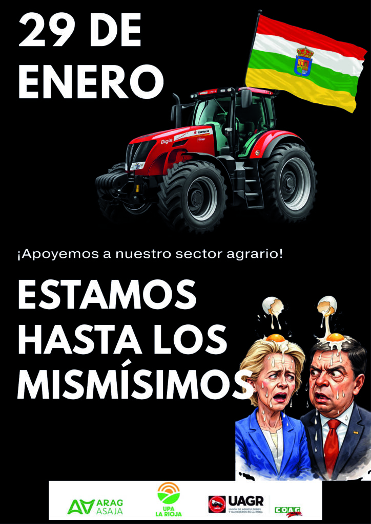 Las organizaciones, UAGR-COAG, UPA RIOJA y ARAG-ASAJA, en unidad de acción, convocan la protesta contra Mercosur, los acuerdos comerciales bilaterales, los recortes a la PAC y el escaso respaldo institucional para solucionar los problemas de la mano de obra, los costes y la burocracia.