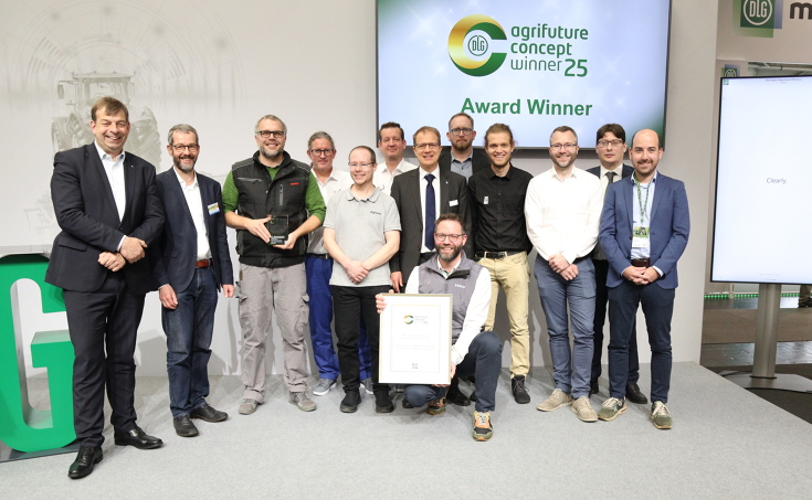El miércoles 12 de noviembre, el innovador proyecto financiado FieldDataSync fue galardonado con el premio DLG Agrifuture Concept 2025. En las primeras pruebas de campo realizadas en el norte de Alemania, máquinas de los fabricantes CLAAS y Fendt trabajaron juntas por primera vez en lo que se denomina un «pelotón». Las máquinas se comunican entre sí de forma inalámbrica y en tiempo real para coordinar sus estrategias de conducción y trabajo y reaccionar de forma dinámica a las condiciones ambientales.