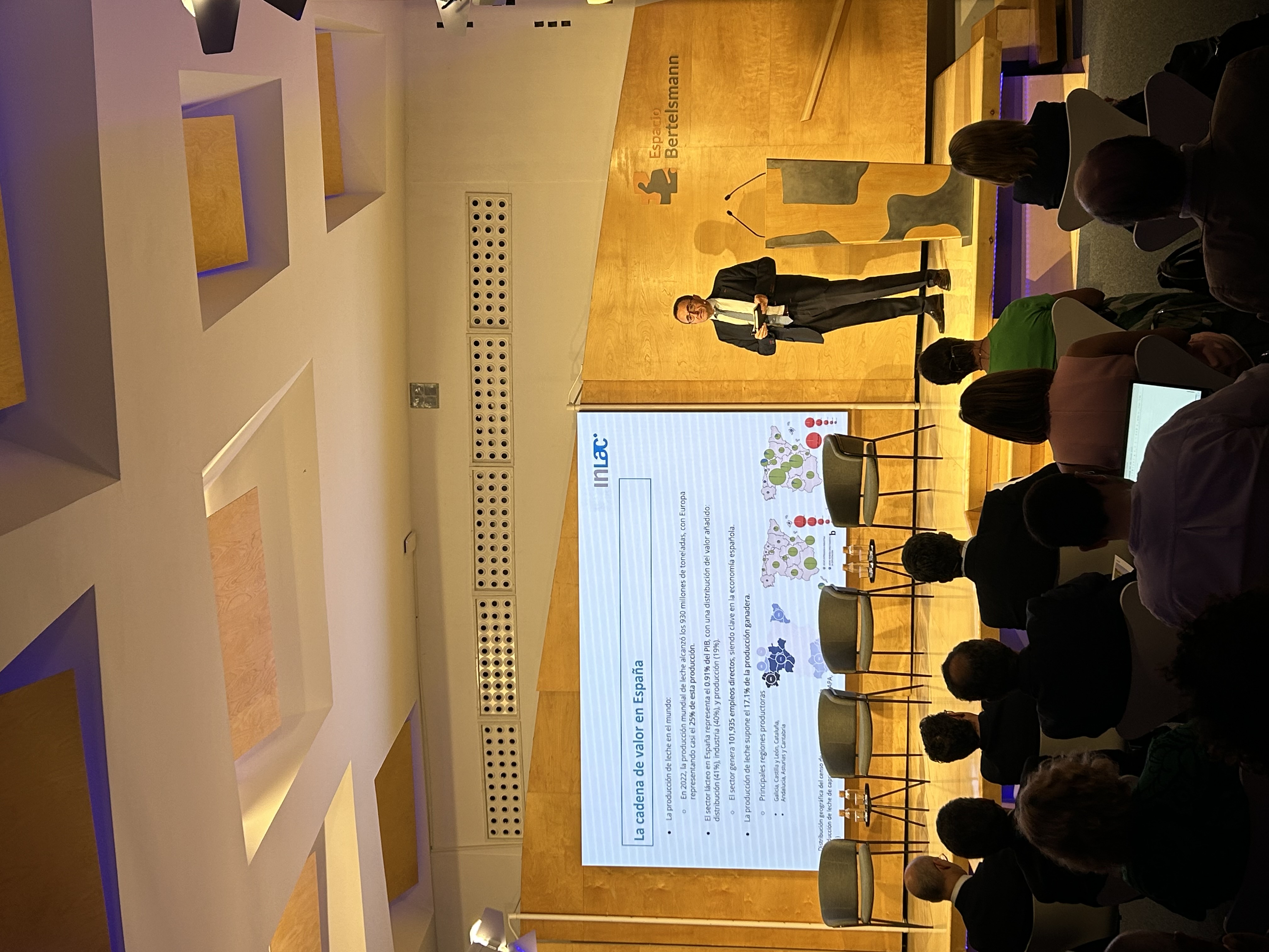 El evento de presentación, celebrado en el Espacio Bertelsmann de Madrid reunió a un buen número de agentes del sector lácteo, desde proveedores de materias primas para la alimentación animal a ganaderos y ganaderas, miembros de destacadas cooperativas y de la industria transformadora. Los representantes de la cadena de valor han estado acompañados en el acto por autoridades, ecosistema asociativo, expertos en sostenibilidad y medios de comunicación. La jornada fue presentada por Nuria Arribas, directora gerente de InLac, quien dio la bienvenida a los asistentes, subrayando la importancia de la estrategia sostenible en el contexto actual.