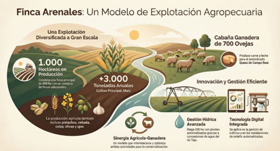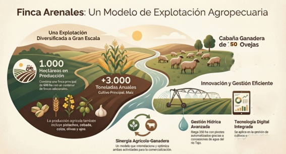 En conjunto, Finca Arenales representa un modelo de explotación que combina escala, innovación y gestión eficiente de recursos, demostrando cómo la agricultura y la ganadería pueden avanzar de la mano con tecnología, planificación y una visión integral del territorio.