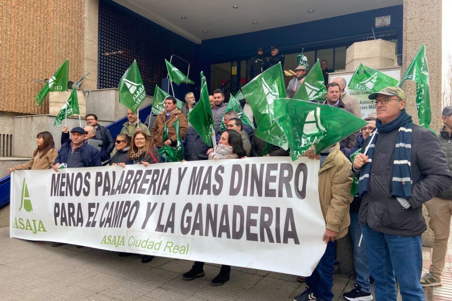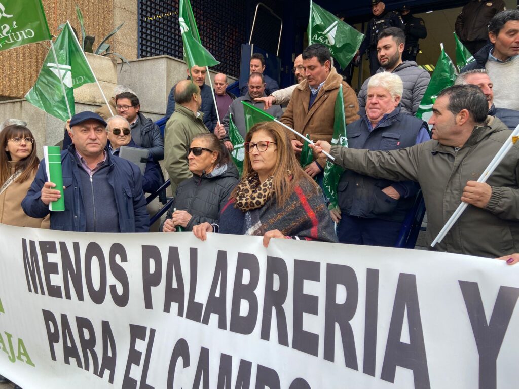 Convocados por la Asociación Agraria-Jóvenes Agricultores (ASAJA) de Ciudad Real, ganaderos llegados de toda la provincia se han concentrado este jueves a las puertas de la Delegación Provincial de Agricultura, Ganadería y Desarrollo Rural, para protestar por la gestión de la lengua azul y reclamar ayudas urgentes y una apuesta real por la sanidad animal.