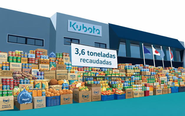 Kubota España ha concluido con éxito su participación en la Campaña del Banco de Alimentos 2025, logrando una recaudación total de 3,6 toneladas de alimentos en este fin de año, que serán destinadas a personas y familias en situación de vulnerabilidad a través de la red del Banco de Alimentos.