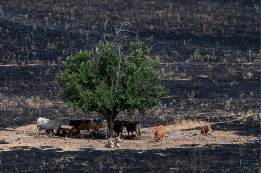 En la imagen, captada durante el gran fuego que se activó en la localidad madrileña de Tres Cantos, un grupo de vacas descansa tranquilamente a la sombra de un árbol que había sobrevivido a las llamas. Los animales habían hecho de cortafuegos natural, pastando la vegetación seca que rodeaba el árbol y evitando que se quemara ese pequeño espacio, mientras que todo alrededor del mismo estaba reducido a cenizas. La interprofesional reconoce la potencia y el valor de esta fotografía como símbolo de esperanza y un recordatorio de la importancia de la ganadería en la conservación del medio rural y en el mantenimiento de los ecosistemas, incluso frente a la adversidad.