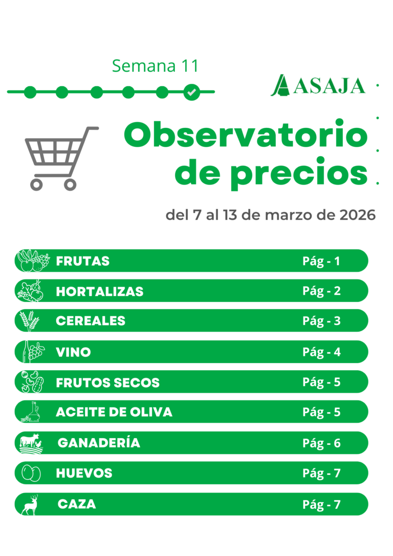Observatorio de precios ASAJA, semana 11. Del 7 al 13 de marzo de 2026.