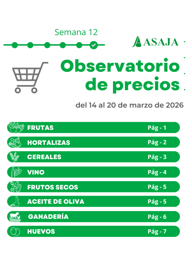 Observatorio de precios ASAJA, semana 12. Del 14 al 20 de marzo de 2026.