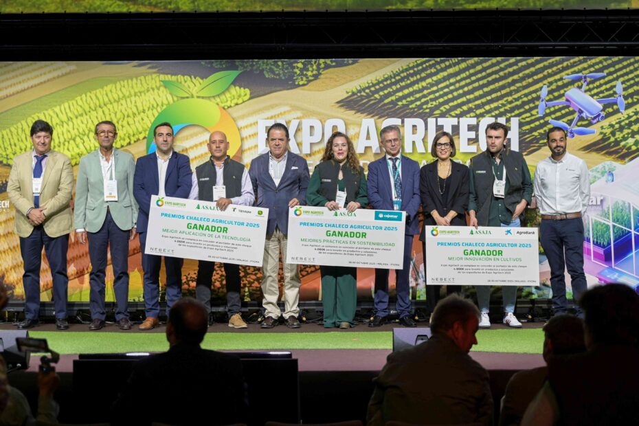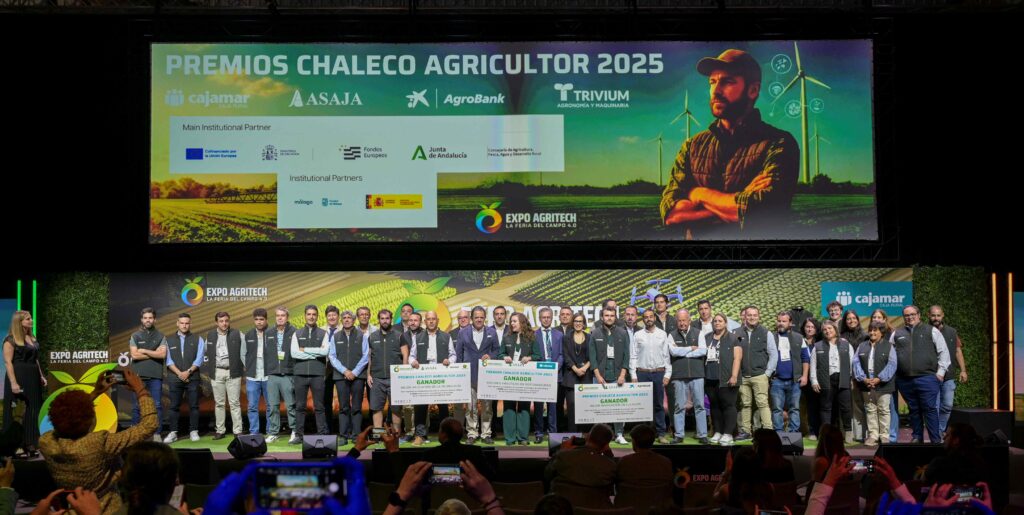Este jueves se ha celebrado la Gran Gala de los Premios Chaleco Agricultor, conocidos como los “Estrella Michelín de la Agricultura”, que han revelado a los mejores profesionales agrícolas de España. Los galardones, que se han entregado en Málaga en el marco de Expo AgriTech 2025, la mayor feria tecnológica para el campo, tienen el objetivo de reconocer el liderazgo de aquellos productores que apuestan por la innovación, la tecnología y la sostenibilidad para conseguir explotaciones más competitivas.