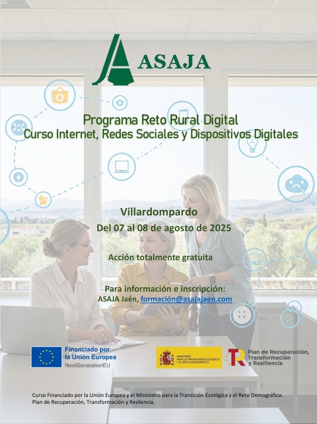 El curso “Internet, Redes Sociales y Dispositivos Digitales”, se desarrollará en Villardonpardo (Jaén) los días 07 y 08 de agosto de 2025, en horario de 17:00 a 22:00 h y con una duración total de 10 horas lectivas en modalidad presencial.