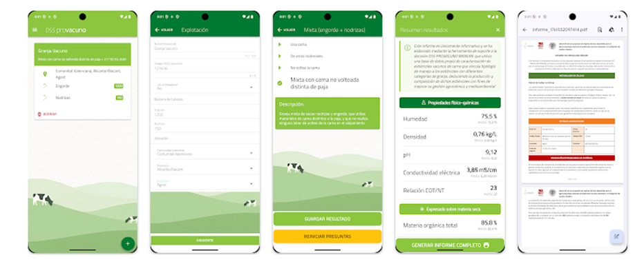 De carácter gratuito y disponible ya tanto para IOS como para Android, la app Provacuno DSS Manure ofrece al ganadero un informe a partir de una base de datos propia de caracterización de los estiércoles procedentes de vacuno de carne que vincula la tipología de manejo con diferentes categorías de granja, deduciendo la producción y composición de dichos estiércoles con fines de mejorar su gestión agronómica y medioambiental.
