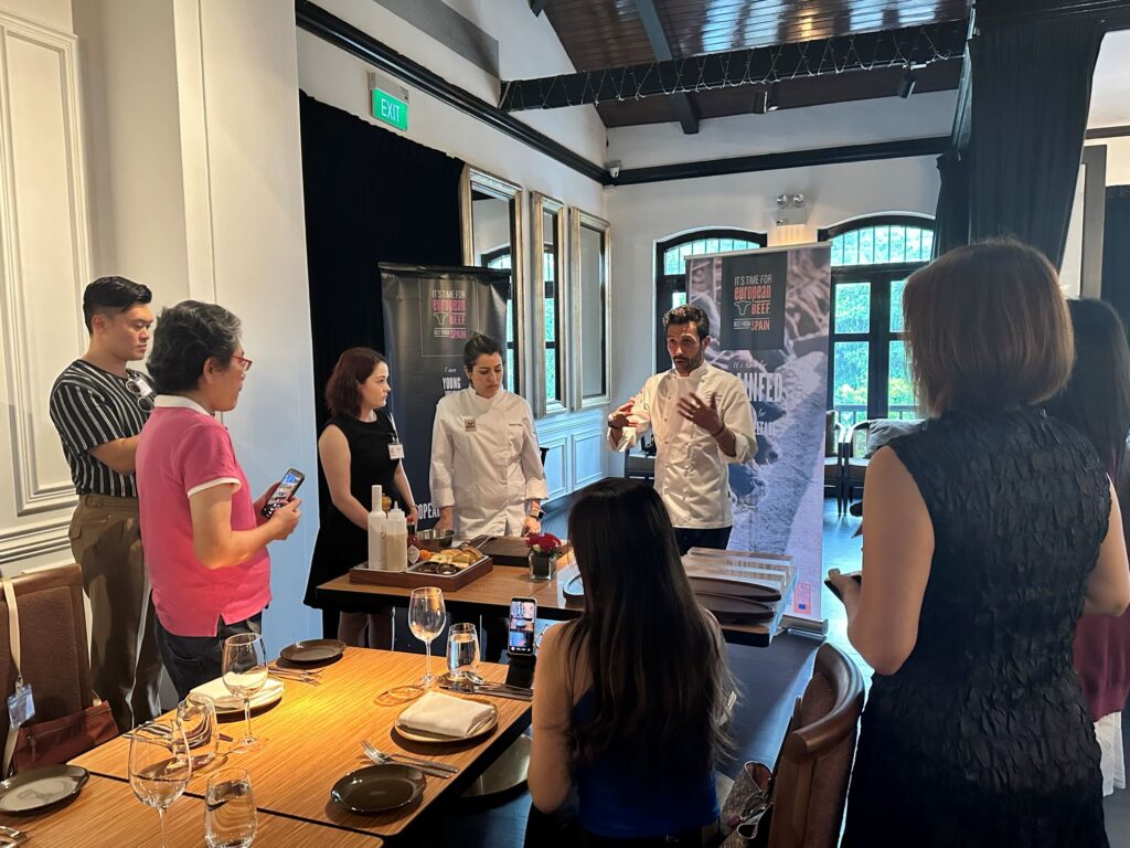 El encuentro contó con la participación del embajador de España en Singapur, Álvaro de la Riva, y del consejero Económico y Comercial de la Embajada de España en Singapur, Antonio García Rebollar, quienes dieron la bienvenida al acto. Posteriormente, se presentaron las cualidades de la carne de vacuno española, destacando su calidad, sabor, terneza y jugosidad, y se ofreció una degustación de recetas elaboradas por los reconocidos chefs Iván Cerdeño (dos estrellas Michelin, Restaurante Iván Cerdeño, Toledo) y Rocío Parra (una estrella Michelin, Restaurante La Parra, Salamanca), que deleitaron a los asistentes y confirmaron el carácter premium del producto.