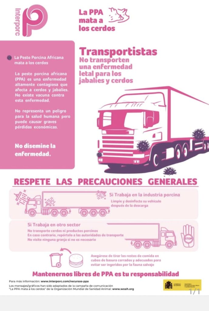 - Prohibir el consumo de productos derivados del porcino en el interior de la explotación.
