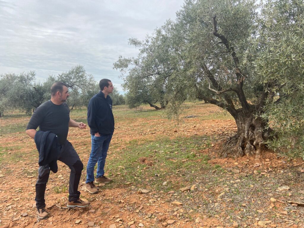 Diversificación real en secano: además del olivar, hay viñedo, pistacho, cereal y reforestación, e incluso una pequeña parte de olivar intensivo en experimentación. Esa mezcla permite ver cómo se toman decisiones de cultivo pensando en rentabilidad y resiliencia.